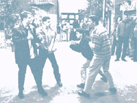 Monica si accorge di un'azione di borsa con le sue iniziali (MEG) e decide di guadagnarsi da vivere giocando in borsa piuttosto che accettando un lavoro avvilente in un ristorante anni '50. Non riesce molto bene. Phoebe decide che è arrivato il momento di incontrare suo padre, ma investe accidentalmente il suo cane. Dopo averlo portato dal veterinario, lo riporta a casa del padre, scoprendo però che Frank Buffay non si fa vivo da quattro anni. Comunque, scopre anche di avere un fratellastro, Frank Jr. Ross e Chandler vengono importunati da due bulli, che gli rubano i posti al bar e i cappellini che indossano. Quando i quattro stanno per arrivare alla resa dei conti, qualcuno ruba i cappellini, così si decidono a